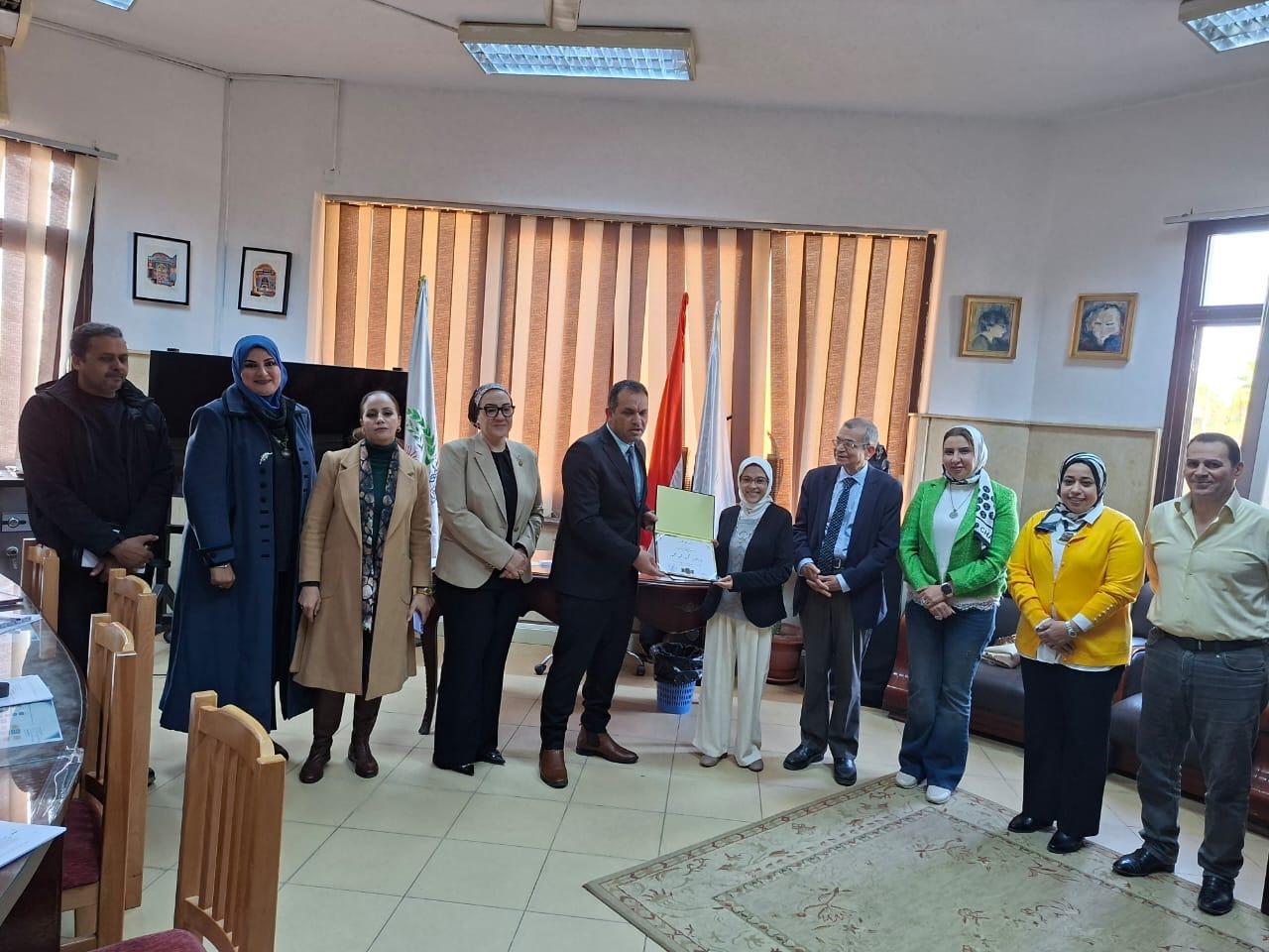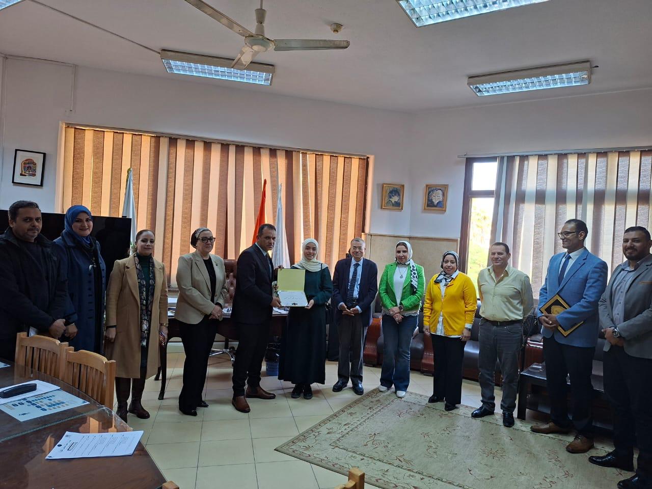 وقد قام السيد الأستاذ الدكتور محمد عبد العظيم، نائب رئيس الجامعة لشئون خدمة المجتمع وتنمية البيئة،والمشرف علي الكلية بتكريم كل من: